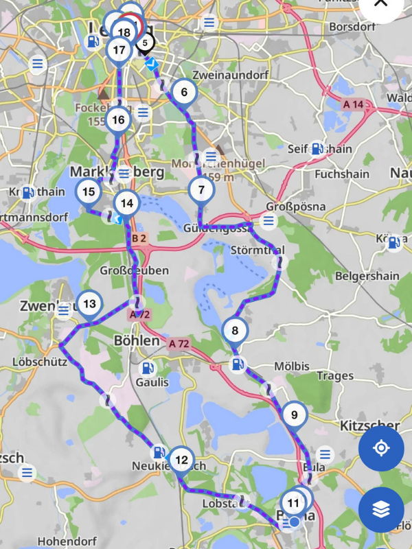 Rückfahrt über Zwenkau, Markkleeberg auf den Augustusplatz